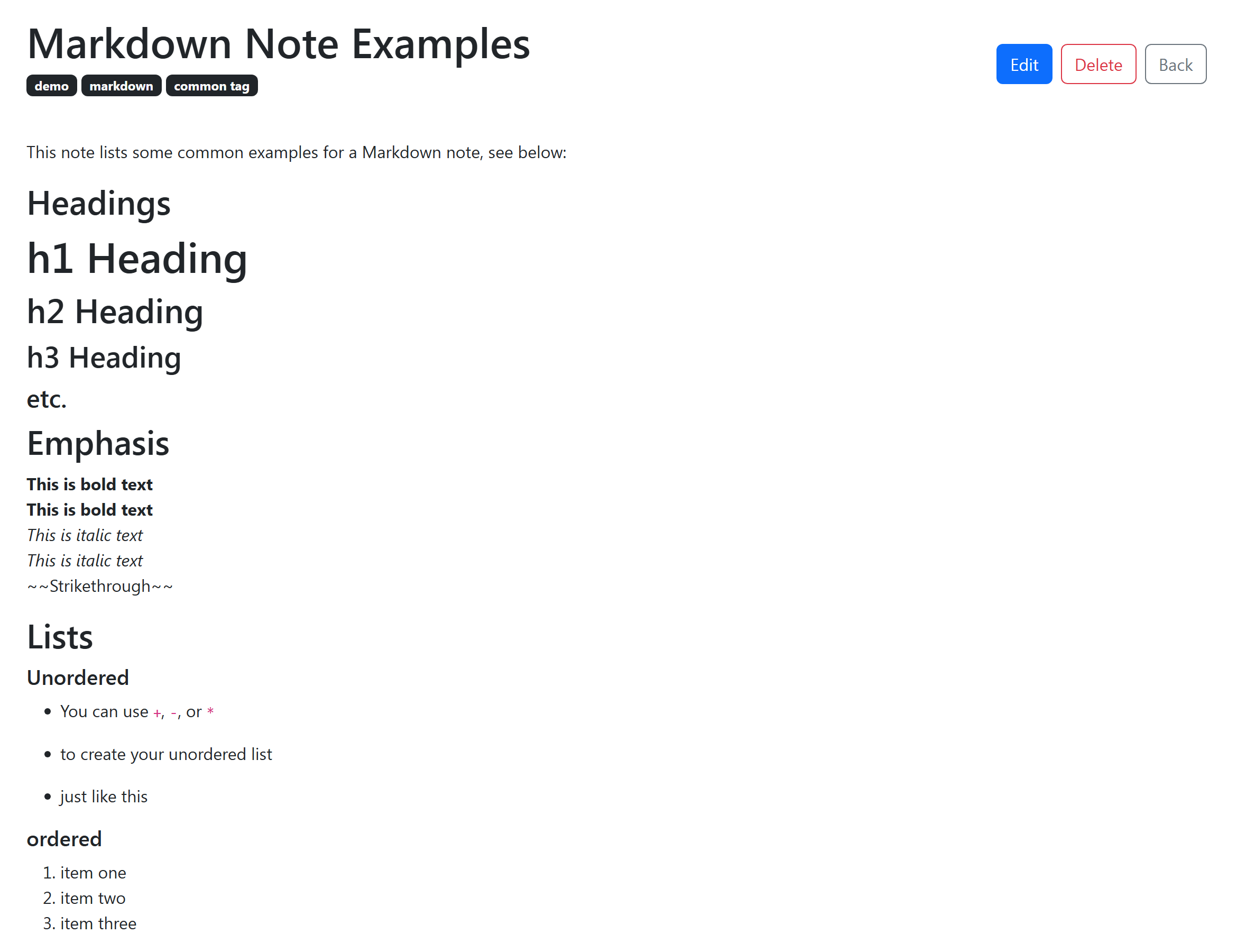 This is a Markdown note taking app that also allows users to search and manage different notes with their tags and much more, you can check out the live demo here (mobile/touch friendly), or its repository here.