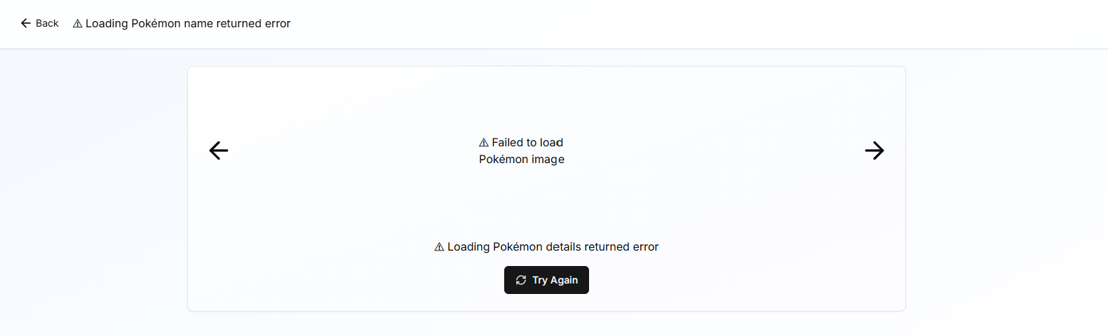 On the Pokémon info page, the user can view various details and use the left/right arrows to navigate to the previous/next Pokémon: